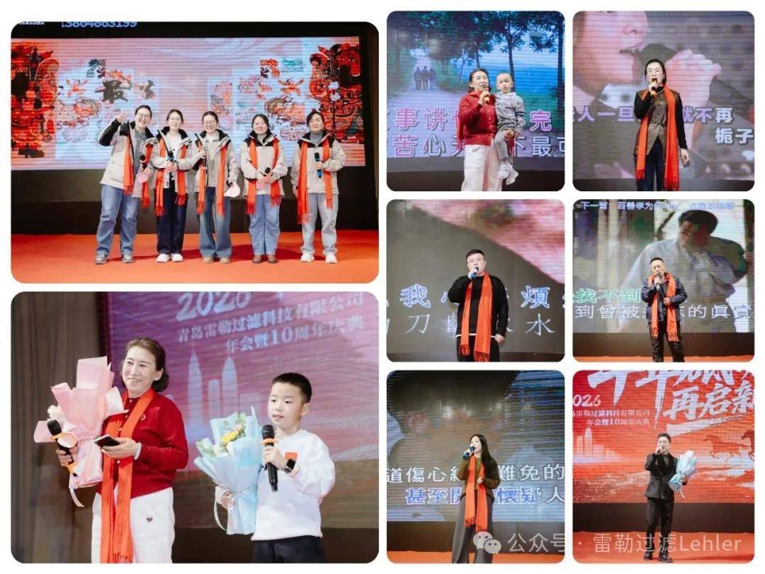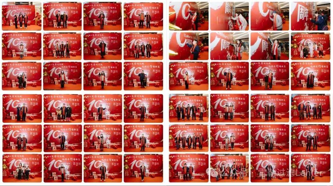 公司领导并肩执刀,切开这份承载十年耕耘的甜蜜,现场掌声阵阵。切糕仪式后,全体同仁登台合影,一张张笑脸定格成雷勒最珍贵的画面。